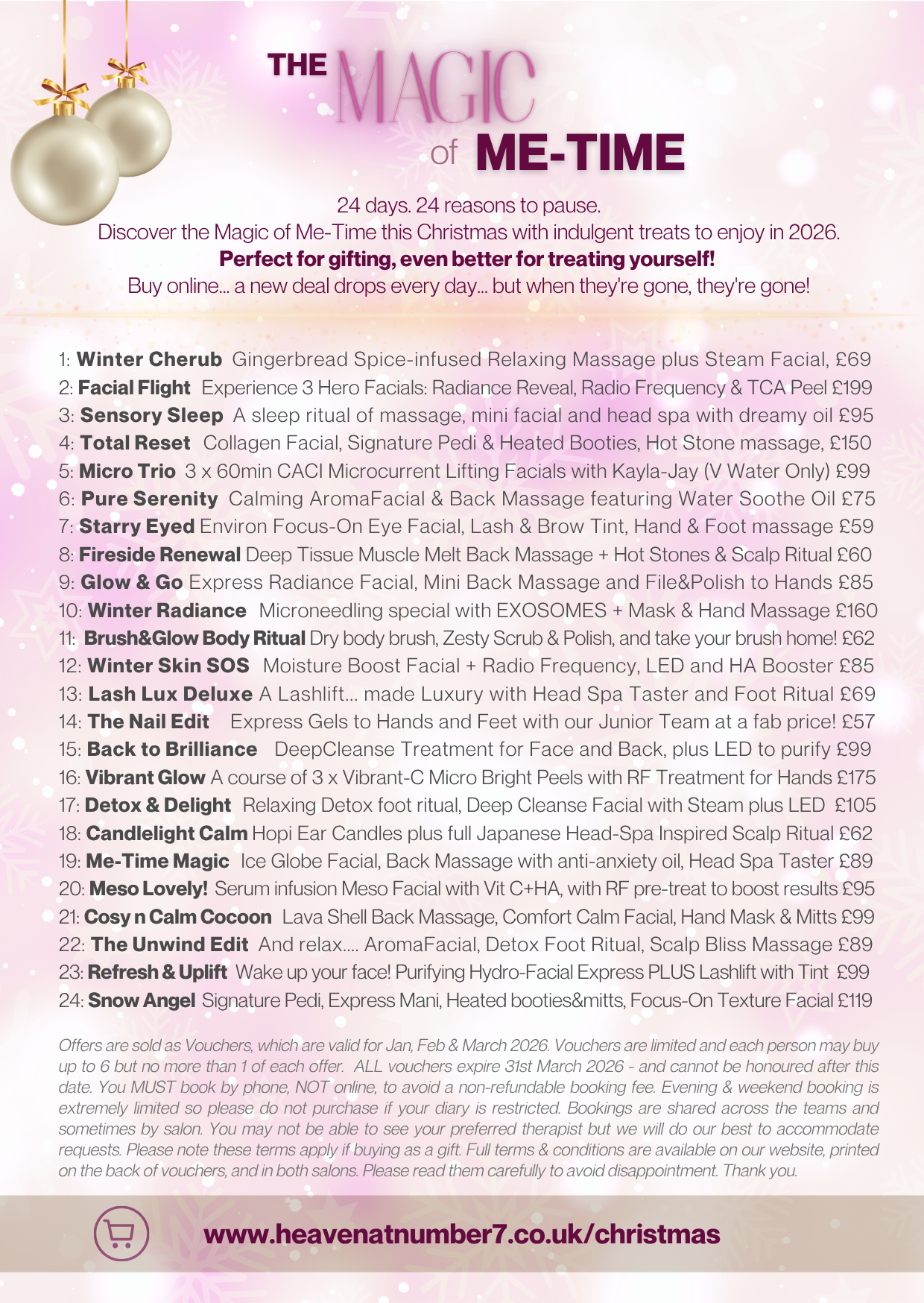 You buy these offers onlines - no need to leave the sofa - as a voucher in december, to use in 2026. The vouchers are valid for Jan, feb and march 2026 and you can even add upgrades when you book in to craft the most perfect pampering for you!